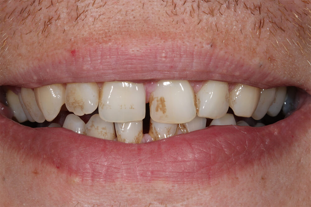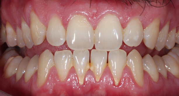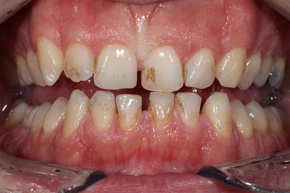 - eigentlich sehr schöne Zähne aber entlang der Zahnfleischränder bestehen Probleme