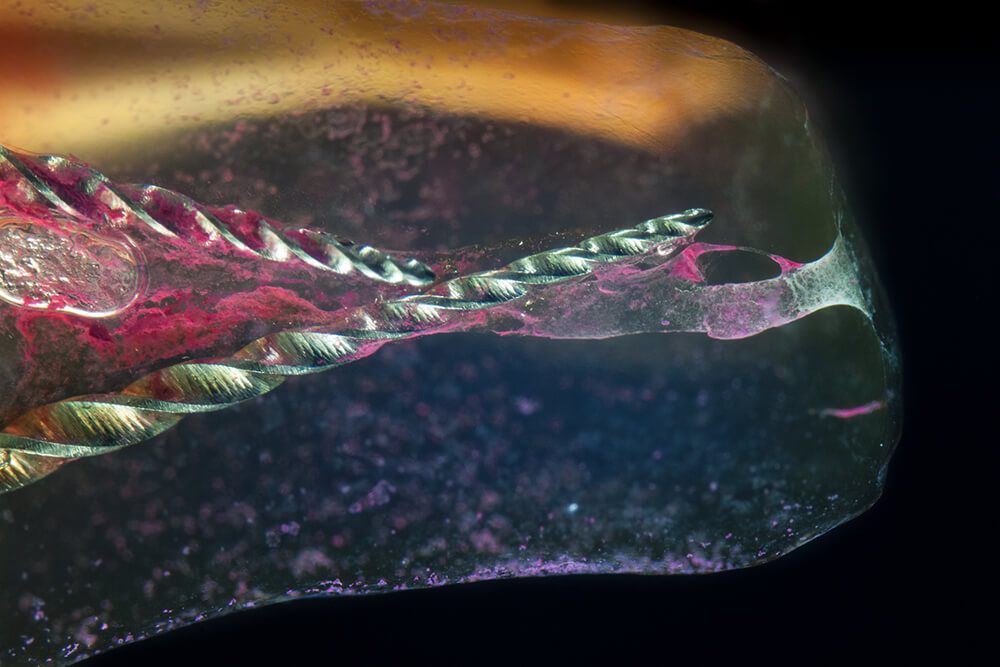 Das Verfahren, Zähne in durchsichtige Präparate zu überführen ist schon über 100 Jahre alt. Aber erst durch die Weiterentwicklung der alten Technik und die Kombination mit moderner Fotografie sowie der Entwicklung eines geeigneten Gefäßes zur Fotografie ist es meinem Vater Dr. Holm Reuver gelungen, einzigartige Bilder vom Inneren der Zähne aufzunehmen.