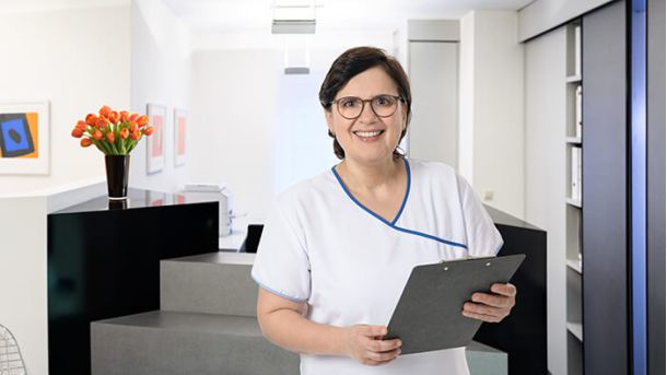 Sie ist Ihre Hauptansprechpartnerin, wenn es um Termine, Heil- und Kostenpläne oder Abrechnung geht. Darüber hinaus ist sie in den Bereichen professionelle Zahnreinigung, begleitende Parodontitisbehandlung und Kariesprävention tätig.