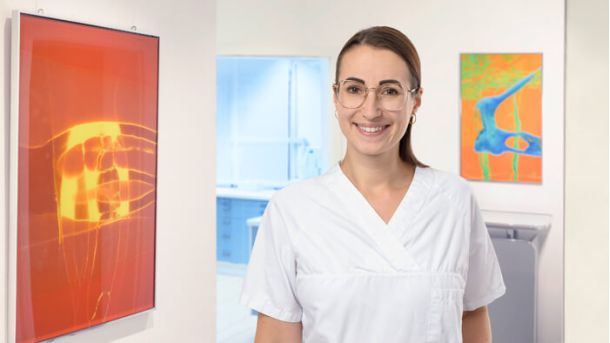 arbeitet in der Behandlungsassistenz und der Behandlungsvorbereitung. Außerdem steht sie Ihnen als Ansprechpartnerin in der Praxis und am Telefon zur Verfügung.